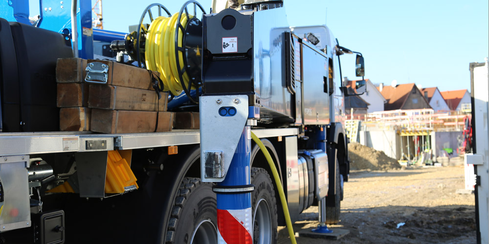 The e-engine is supplied by the jobsite electricity and no additional battery is needed, which results in more payload reserves for the daily operation of the concrete pump.