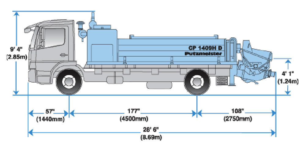 Navigating congested job sites and busy streets is easy with Putzmeister’s versatile CP 1409H Truck-Mounted Concrete Pump.