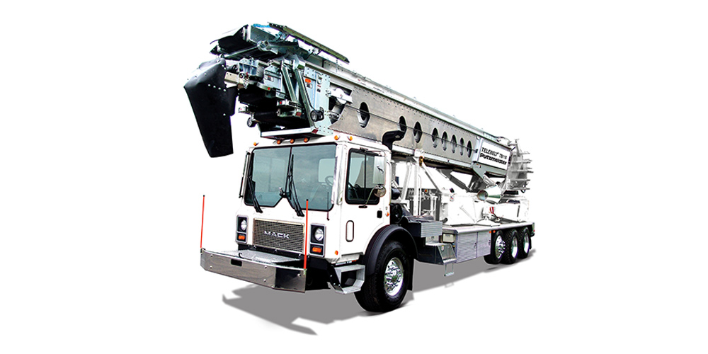 The MXTB 130 features a five-section telescopic conveyer with a smooth, “surge-free” flow and the ability to perform multiple tasks from a single location, and is designed for mass placement of large aggregate concrete. With a horizontal reach of up to 126 feet 6 inches (38.6 meters), it can easily access difficult-to-reach areas.
