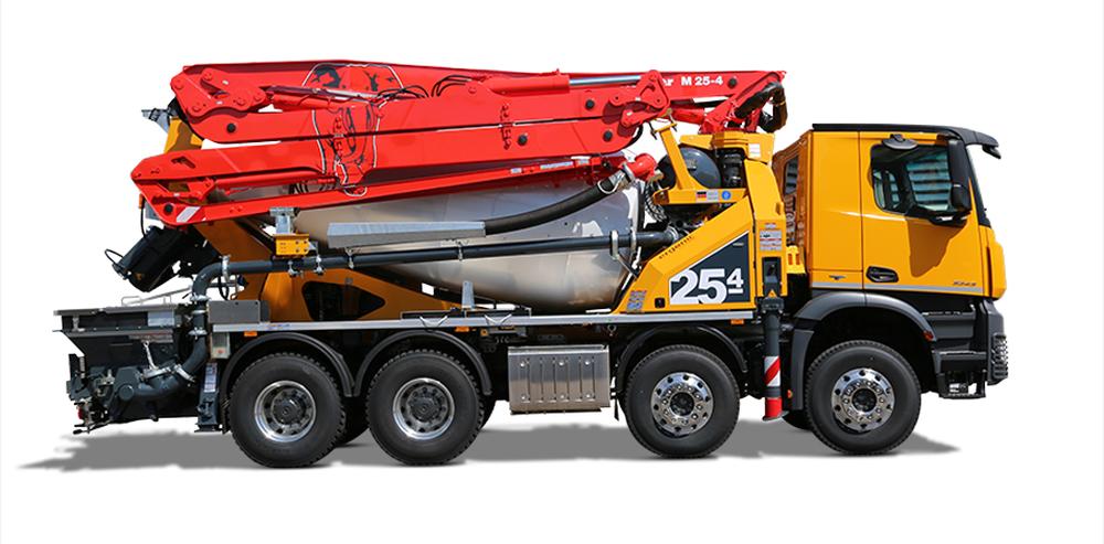 The original PUMI® by Putzmeister combines pump, mixer and placing boom in a single machine. It is an addition to the fleet of truck-mixers held by service and customeroriented suppliers of ready-mixed concrete and significantly extends the range of jobs they can take on: a PUMI® is particularly economic wherever truck-mounted concrete pumps are too expensive or too big and inflexible or wherever truck-mixer conveyor belts are not adequate. In particular, it can be operated cheaply and quickly in small construction sites up to approximately 20 m³.