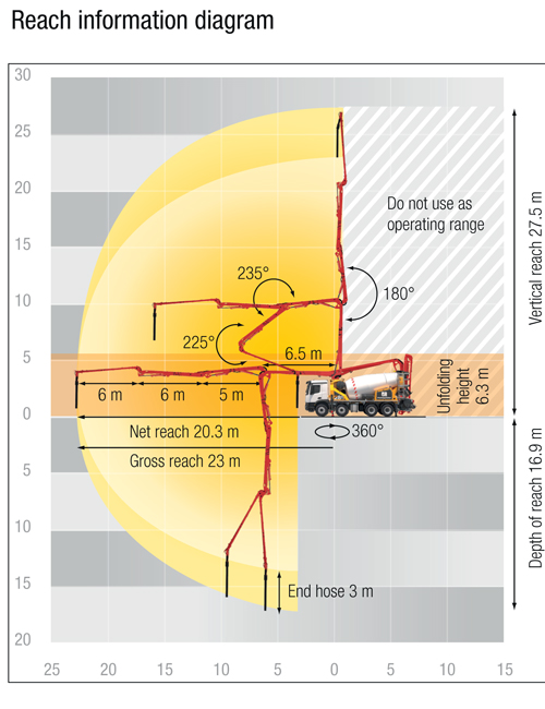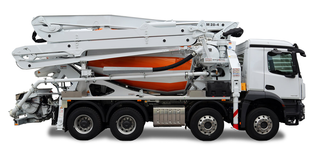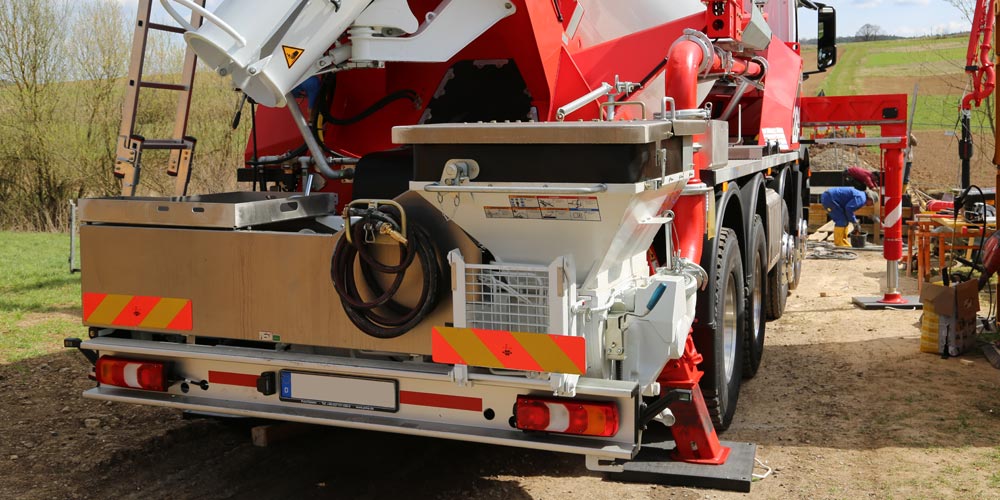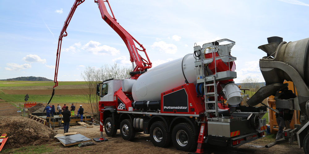 The original PUMI® by Putzmeister combines pump, mixer and placing boom in a single machine. It is an addition to the fleet of truck-mixers held by service and customeroriented suppliers of ready-mixed concrete and significantly extends the range of jobs they can take on: a PUMI® is particularly economic wherever truck-mounted concrete pumps are too expensive or too big and inflexible or wherever truck-mixer conveyor belts are not adequate. In particular, it can be operated cheaply and quickly in small construction sites up to approximately 20 m³.