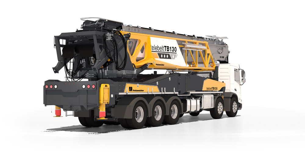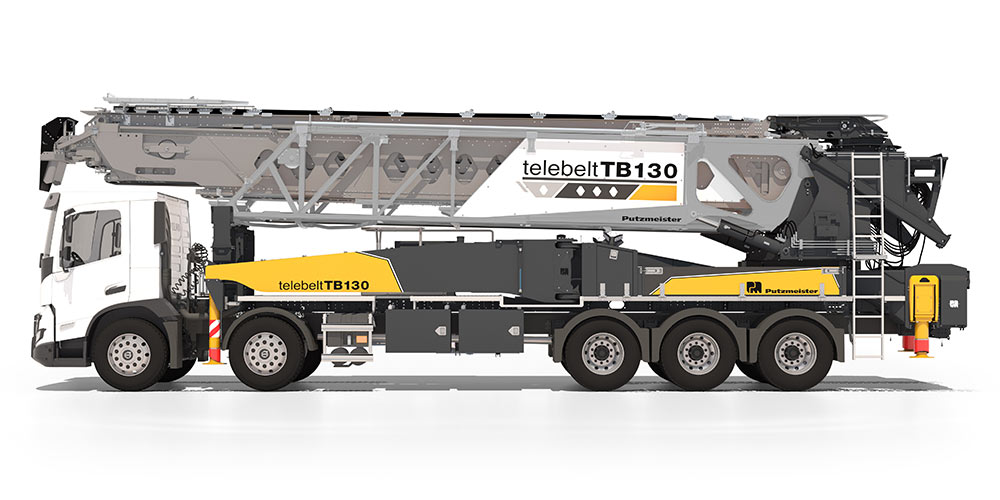 Der Putzmeister Telebelt® TB 130 hat eine horizontale Reichweite von 38 m und ist robust, leicht und einfach zu bedienen – das spart Zeit und Arbeit. Der fünffach teleskopierbare Ausleger und das vollhydraulische Förderband verarbeiten Beton bis zu 305 mm Körnung und Materialien wie z.B. Sand oder Schotter bis 100 mm Gesteinskörnung. Der TB 130 ist mit einer Auslegerkonstruktion ausgestattet, die ein schnelles Aufstellen in beengten Bereichen und unwegsamem Gelände ermöglicht, und eignet sich ideal für Projekte wie Windparks, Dämme, Brückendecks und für den Garten- und Landschaftsbau.