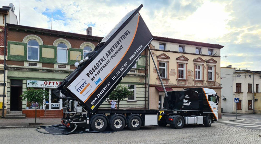 TransMix – The mobile floor screed factory on a compact 4-axle chassis